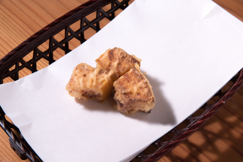大坂:これはスイーツの位置づけなので、さつまいもで作る場合にはコースの締めに食べてたんですよ。修行先の天政でこの料理をやってたんですが、昔はまだ芋が甘くなかったから、この料理を出していたんじゃないかなって。